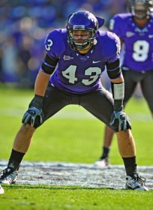 Once Carder finally got the green light, his athleticism quickly bubbled to the surface. No, there weren’t a ton of offers coming out of Sweeny (Tex.) High School, but the one from TCU was more than enough. He jumped at it, knowing the reputation of Gary Patterson and his staff for turning decent recruits into defensive studs. Patterson saw something that absolutely no one else did, a familiar occurrence on this campus. After learning behind all-star Jason Phillips in 2008, Carder was turned loose last fall, making 89 tackles, 10 stops behind the line, and breaking up 11 passes in an All-Mountain West debut. With two years left and expectations percolating, he’s now bucking to keep the Frogs among the nation’s elite while further defying the odds that were stacked against him as a battered and broken 13-year old. TCU is a program that perennially develops at least one or two outstanding defensive players worthy of national recognition and attention from pro scouts. Carder has the potential to be that guy in 2011. In just his first season as a starter, he played an integral role on the nation’s top-ranked defense, earning a spot on the All-Mountain West second team. That year of experience coupled with the graduations of some key veterans means he’s poised for the kind of breakthrough junior year that reverberates outside the walls of the conference. Carder is a versatile 6-2, 232-pound athlete, with excellent instincts and a natural feel for the position. Not only can he go sideline-to-sideline effortlessly, but he’ll also make plays vertically as a pass rusher and a pass defender. There’s a reason why he was able to redirect 11 passes last season—he knows where he belongs on the field at all times. You want multi-dimensional? The junior could be the Horned Frogs’ choice to handle kickoffs and long-range field goal attempts in 2010. It’s pretty sad I know this but years before he ever took up football, Carder was a national and world BMX bike champion at the tender age of 9. Blessed with incredible balance as a toddler, he was riding without training wheels shortly after his second birthday. After seven U.S. crowns and numerous trips abroad, he retired from the circuit before the end of elementary school, citing a desire to compete in new sports and spend more time with friends. Like Herzlich, Carder is an incredible story and having gone through something similar as a rugby player growing up in South Wales in the United kingdom I can appreciate what he’s gone through to get where he is today.