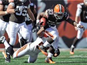 So happy to be writing Trent Richardson into this category as he was my favourite player coming out of college last season. Trent became the first Browns rookie to run for 100 yards and score on a run and a pass in the same game. For me Trent’s style is everything you would want in a running back. He has great hands, Great balance and runs really well behind his pads. He’s a freak of nature in the weight room and he’s very flexable for a big back. The browns have had the greatest running back ever in Jim Brown in my opinion and if he can stay healthy I don’t see any reason why Trent Richardson can’t beat all of his records. I’ve watched and read lot of stuff about Ernie ‘The express’ Davis over the last 20 years and I’ve been waiting for the Browns to draft the next great back so when Richardson’s name was called to them last April I was so excited. It’s a shame he didn’t go to Syracuse like Brown and Davis but I think he’d settle for the two National championships at Alabama and a couple of seasons playing under Nick Saban. He won the Doak Walker award last year and was third in the Heisman race behind Andrew Luck and RG3. The sky’s the limit for this guy. I was asked to compare him to a former player a few months ago and I think he’s sort of cross between Emmitt Smith and Earl Campbell. He’s surprisingly elusive for his size, He’s very powerful and he has very good hands as I’ve already said. He’s the real deal. So excited about his potential and I think the comments made by Jim Brown this off-season about Trent will light a fire under him. He’s overcome so much adversity in his life and he’s a fighter, who thrives on negativity. He’s a great person.