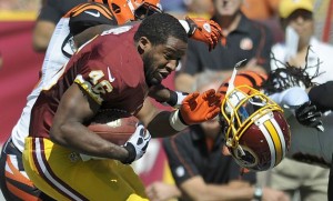 So far this season Washington rookie running back Alfred Morris has run for 236 yards and 3 touchdowns and to me it seems like Mike Shannahan has have found his latest 1000 yard running back to be drafted on the last day of the draft. Shannahan runs a fantastic zone running scheme that relies on backs to use a one cut and go method. Just put on a Terrell Davis highlight reel to see what I’m talking about.