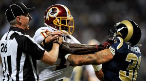Oh, Josh Morgan. If only you had listened to yourself. You could have been a player with a decent five-catch game instead of this guy. I can’t express enough how the current officiating situation is playing into the hands of a guy like Courtland Finnegan. He always tries to get in extras after the play but is usually warned about it before he puts his cleats on. Now he’s not told at all. Last week against the Lions. Finnegan and Jenoris Jenkins did a great job getting to Detroit receiver Titus Young, Who was ejected for re-acting. Can’t wait to see how Brandon Marshall and the Bears receivers react this week. I find Finnegan really entertaining to watch. I want to see him go against Andre Johnson again. I know Johnson nearly killed him but Finnegan actually told his own bench to be ready for the reaction off Johnson before the play. It’s not like he’s a thug and that’s what his game is all about though. He’s actually a top-notch corner in the league. He can man up against any receiver one on one and do a job. For me it was he who won that game for the Rams last week more than it was Josh Morgan who lost it for the Redskins.