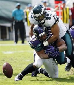 Eagles defensive tackle Fletcher Cox has had a decent start to his career. He’s showed already that he can provide that inside presence that was much-needed in Philadelphia and he’s teaming with Cullen Jenkins, Trent Cole and co on that line to bring defense back to Philly. With the offense under performing so far this season, It’s the defense that has them at 2-0. I hope the official has Shady McCoy in his fantasy team this week.